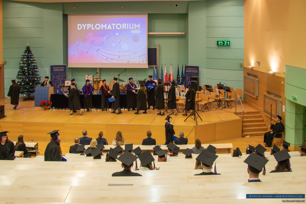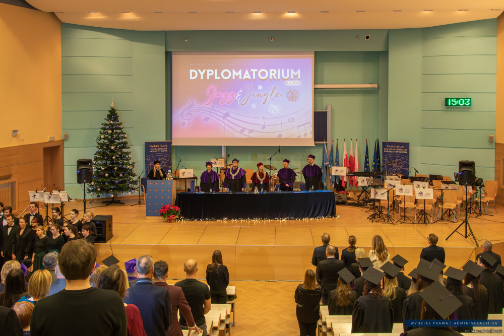 W dniu 8 grudnia 2025 roku na naszym wydziale odbyło się wyjątkowe Dyplomatorium Jazz&Jingle kierunków: Kryminologia, Administracja, Podatki i doradztwo podatkowe oraz Criminology and Criminal Justice – pełne akademickiego ceremoniału, dumy i świąteczno-jazzowego brzmienia.