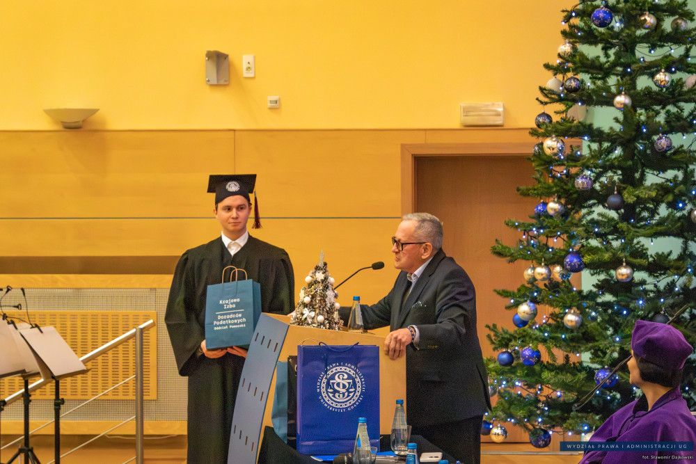 Nagrody dla najlepszych absolwentów kierunku Podatki i doradztwo podatkowe przekazał Lech Feder, Przewodniczący Zarządu Pomorskiego Oddziału Krajowej Izby Doradców Podatkowych.